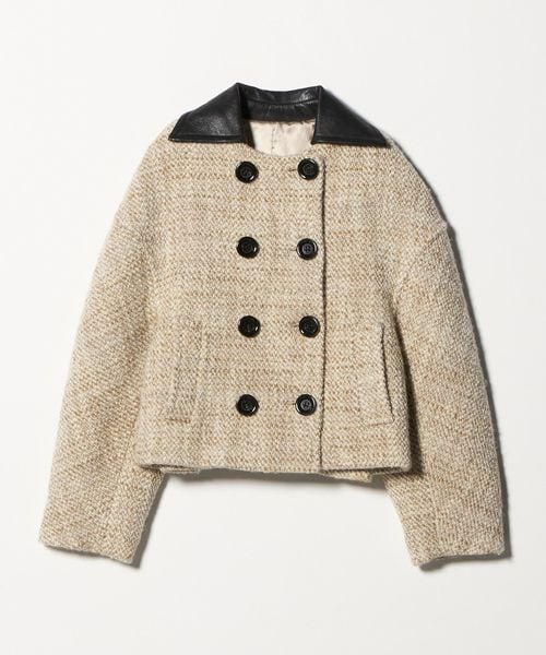 牛革の襟やダブルブレストで大きめのボタンが施され、クラシックな中にもこなれたムードが漂う一着です。