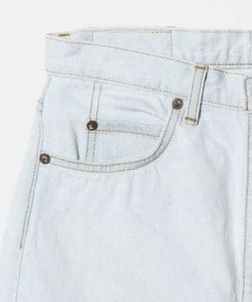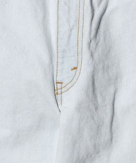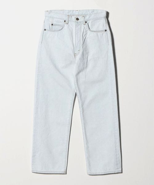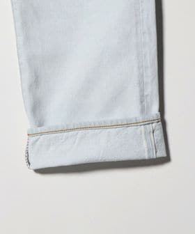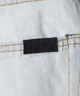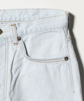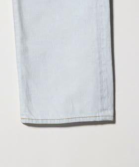ステッチとの配色が効いた、白みがかった明るいブルーのストレートデニムパンツ。