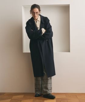 そのままテーラードカラーのコートとしてはもちろん、ラペルを折り返してステンカラー、ボタンをすべて留めてスタンドカラーと、見せ方に変化をつけられる襟の仕様にしました。