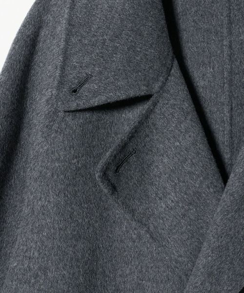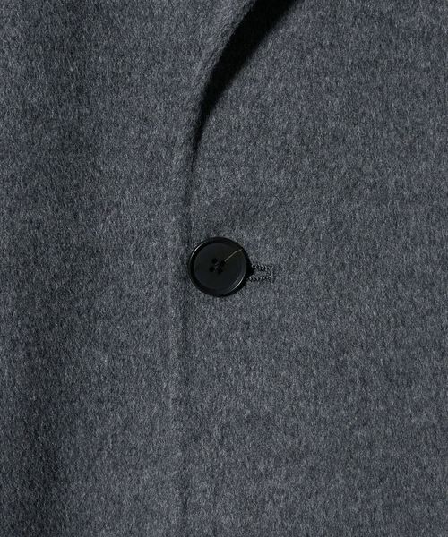 そのままテーラードカラーのコートとしてはもちろん、ラペルを折り返してステンカラー、ボタンをすべて留めてスタンドカラーと、見せ方に変化をつけられる襟の仕様にしました。