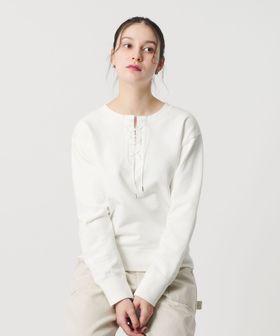 フロントのレースアップがアクセントになったスウェットプルオーバー。
