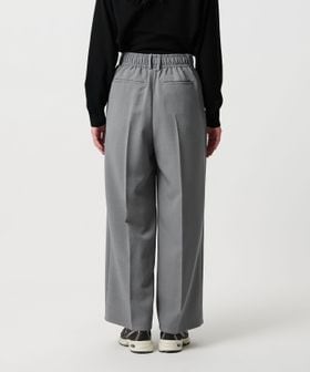ランダムに配したウエストタックと2本のベルトループがアクセントになったワイドパンツ。