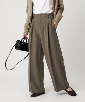 【WEB限定 Wardrobe DAILY MINIMAL】ウールライク ランダムタック ワイドパンツ ウォッシャブル