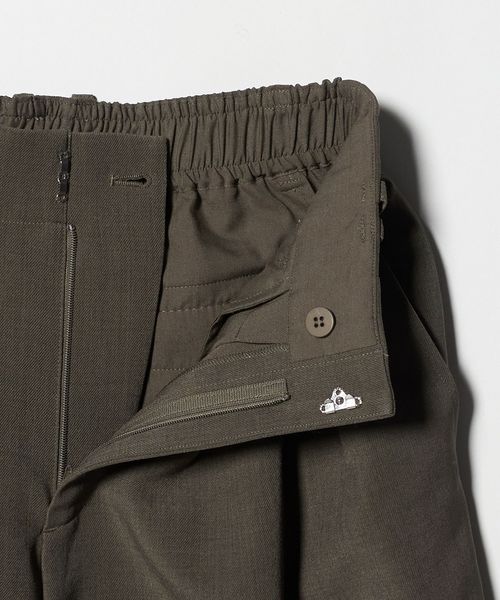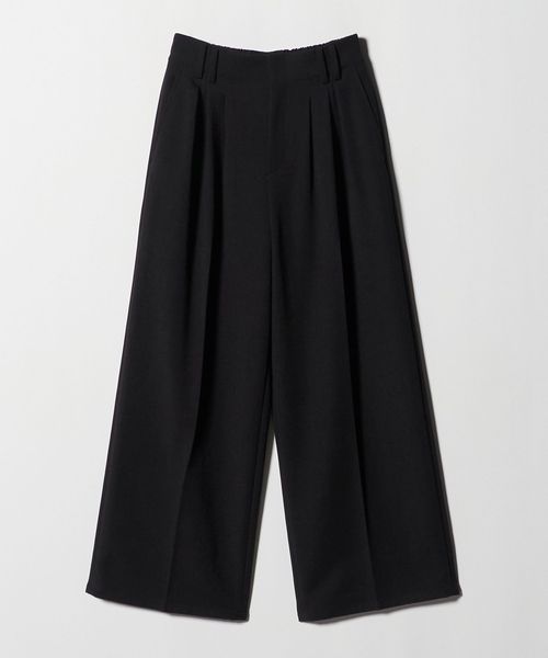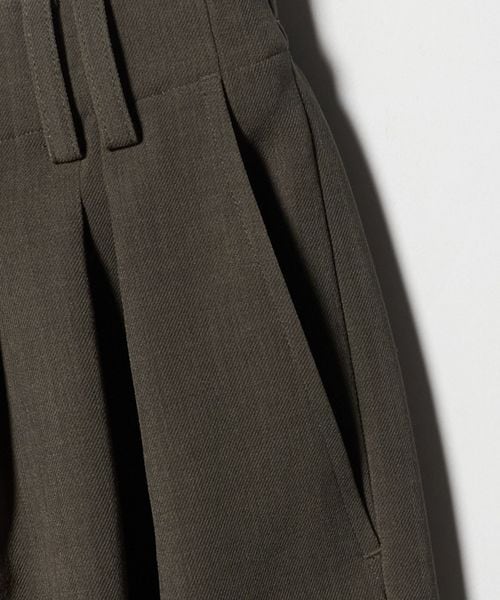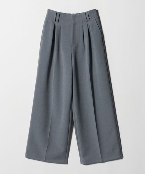 ランダムに配したウエストタックと2本のベルトループがアクセントになったワイドパンツ。