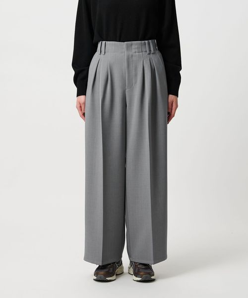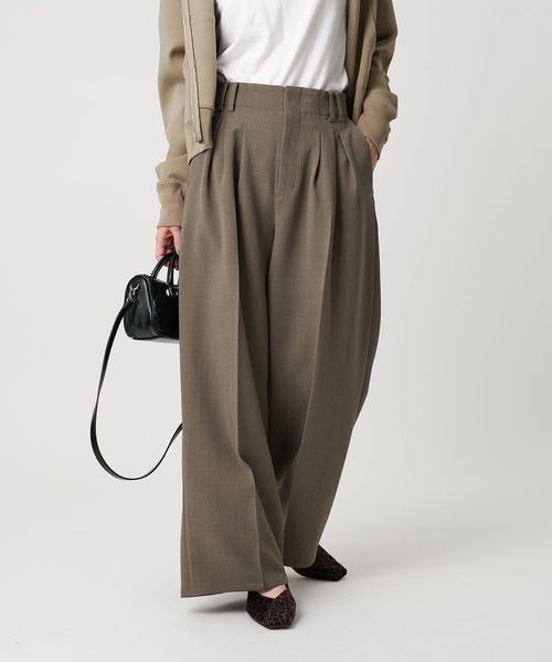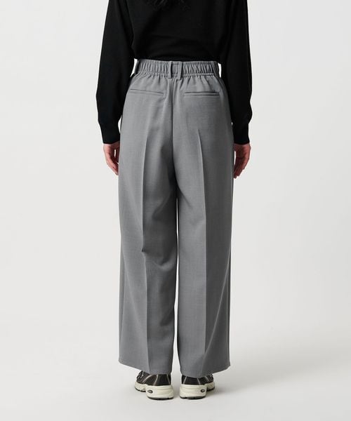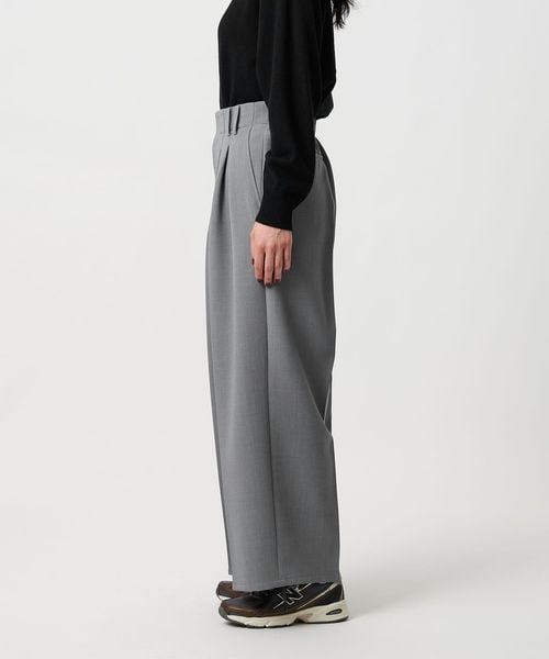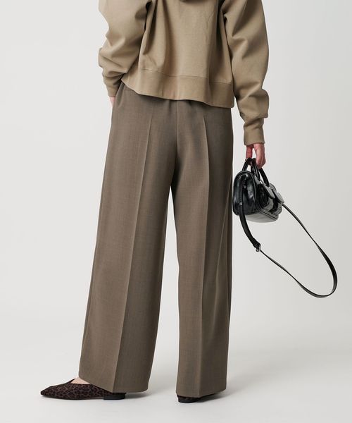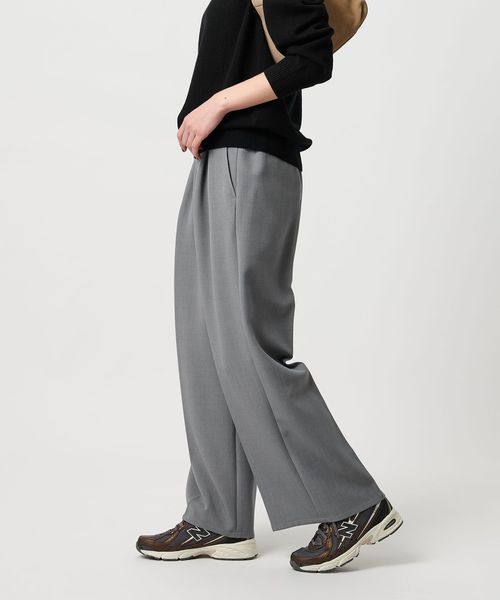 【WEB限定 Wardrobe DAILY MINIMAL】ウールライク ランダムタック ワイドパンツ ウォッシャブル