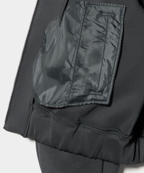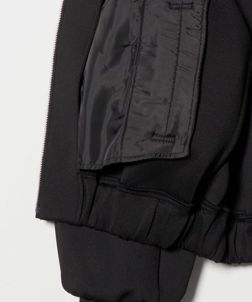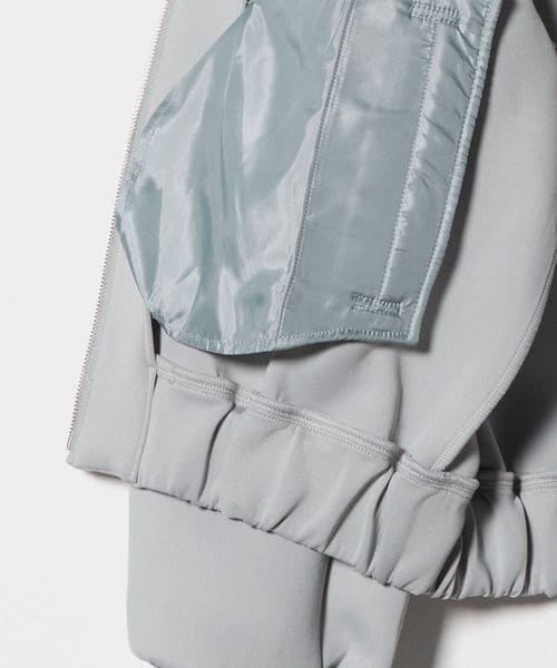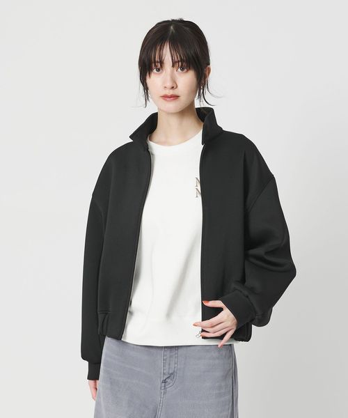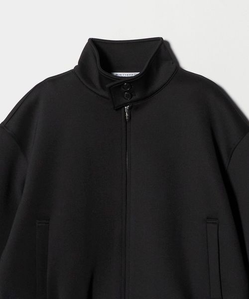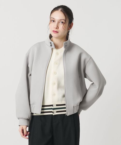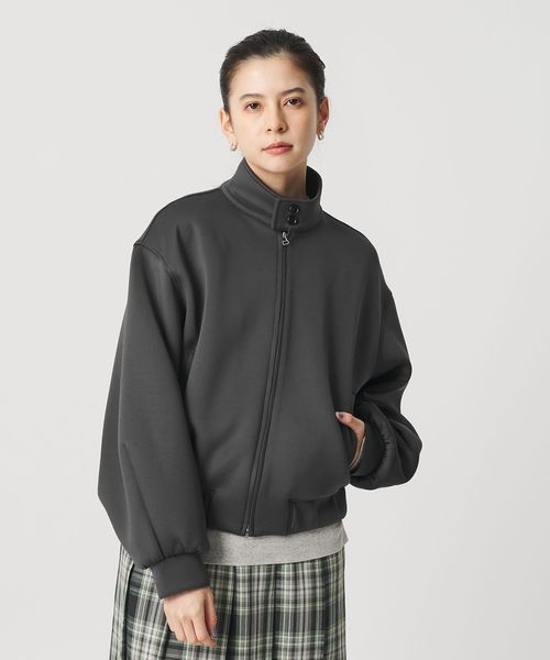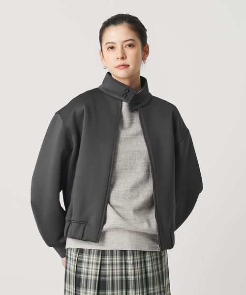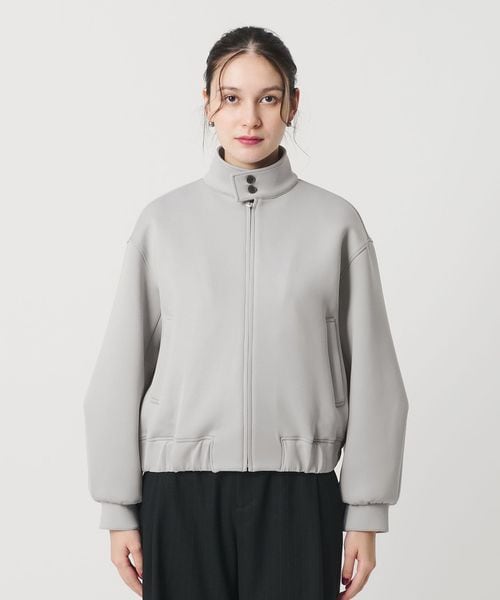 ハリ感と軽さが魅力のダブルニット素材を使用した、ジップアップブルゾン。