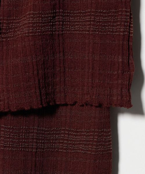 アクリル毛ブレンドの糸で表現した、凹凸のある編地と雰囲気のあるグレンチェック柄が特徴です。