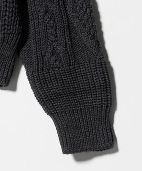 アラン編みで仕上げたオーバーサイズのニットプルオーバー。