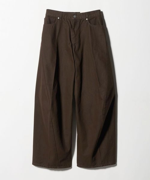 ワイドシルエットのパンツをベースにカーブパターンで立体的に形成された一着。