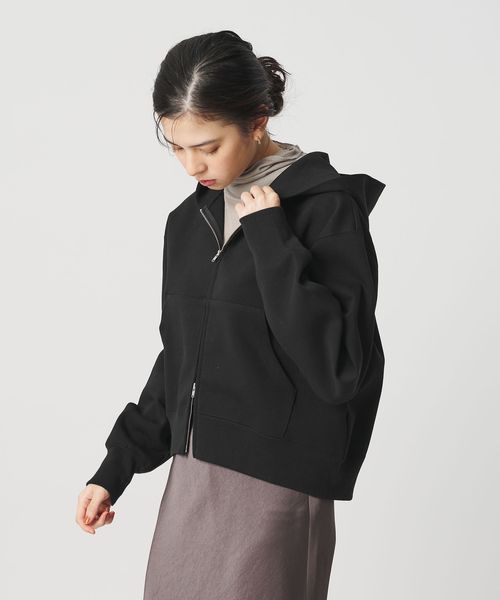 ダブルジップ仕様で、裾側を開けて着ることでこなれた印象に。