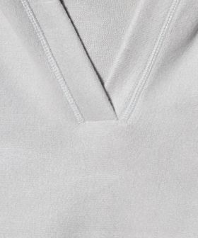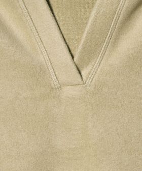 首元があくデザインはシャツやTシャツとの重ね着以外にも、肌見せしたヘルシーな着こなしも◎。