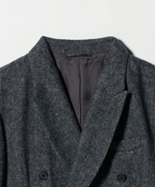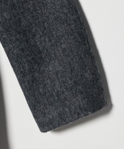 やさしく光るナイロン糸を使用したヘリンボーン柄のダブルフェイス生地をオリジナルで製作。