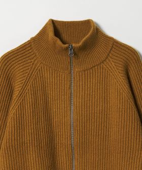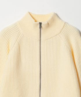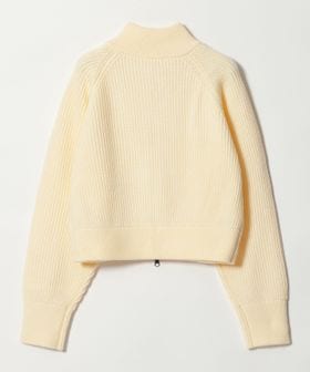 ジップ使いの畦編みのショートカーディガン。