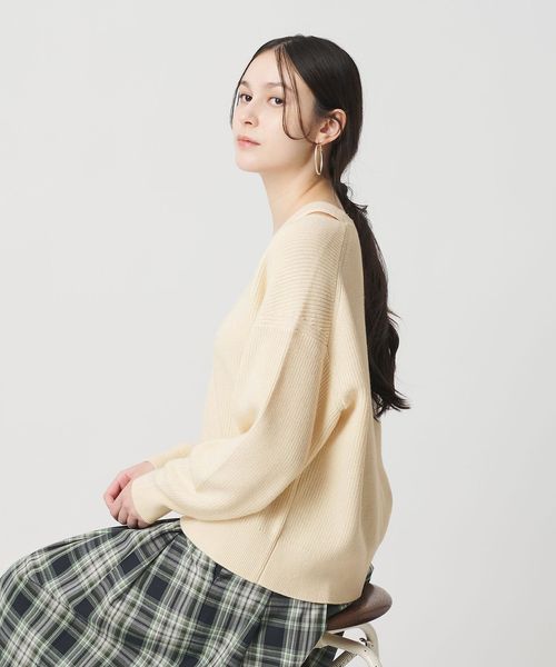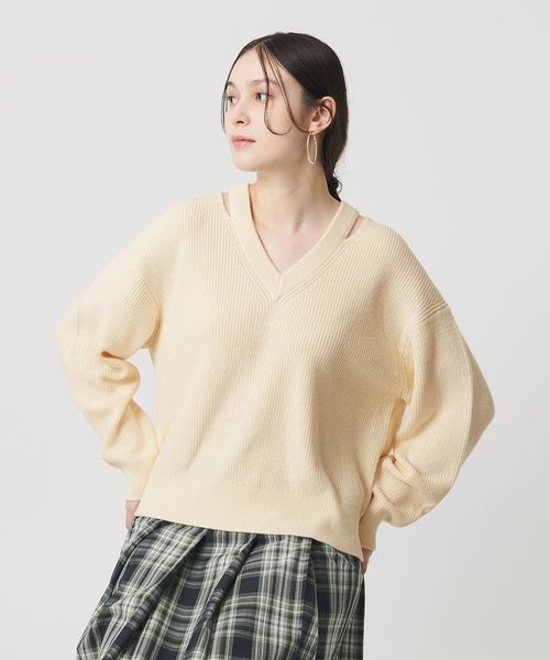 首元のスリットで抜け感が漂うVネックニットプルオーバー。