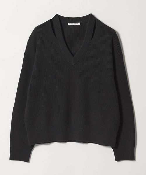 アゼ スリットVネック ニットプルオーバー ウォッシャブル