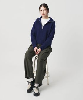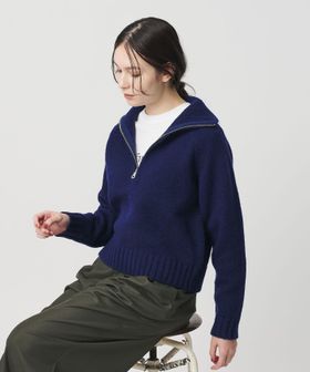 首元のジップは閉じてハイネックとしてはもちろん、開けてオープンカラーニットとしても楽しむことができます。