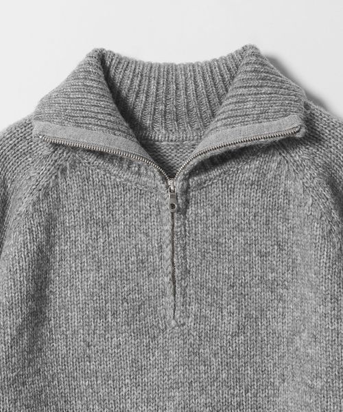 スポーティなハーフジップデザインをニットでお作りしたことでラフになりすぎず、大人のカジュアルスタイルにぴったりの一着に仕上がっています。