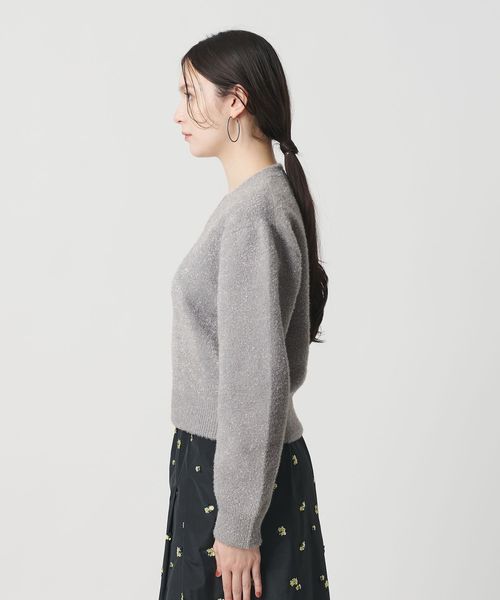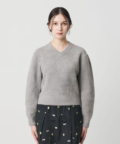 冬の装いに華を添える、カジュアル使いしやすいラメフェザーVネックニット
