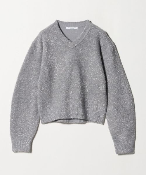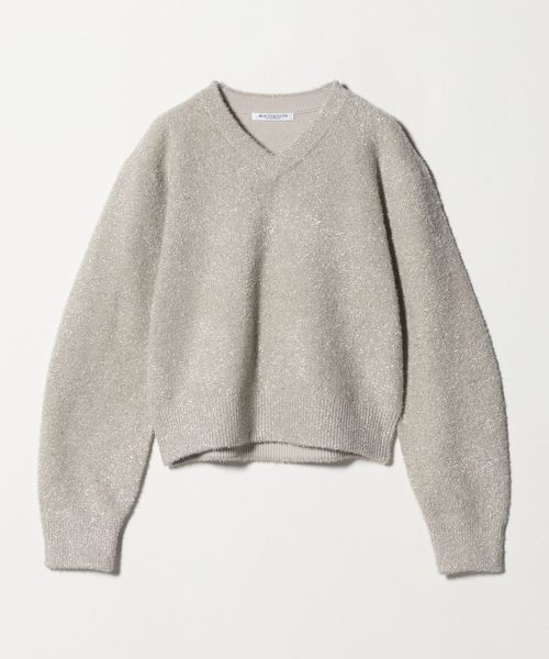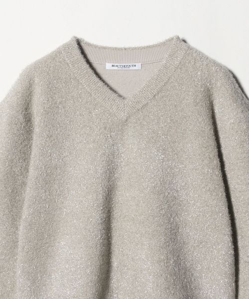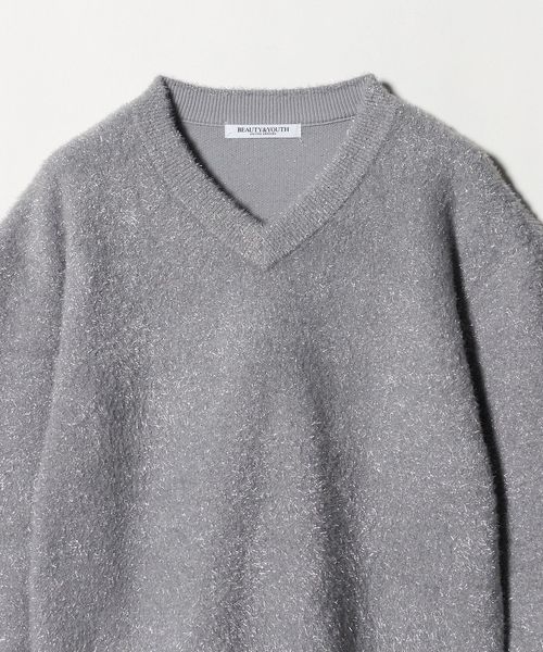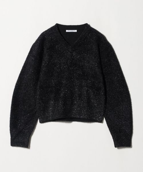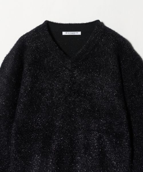 冬の装いに華を添える、カジュアル使いしやすいラメフェザーVネックニット