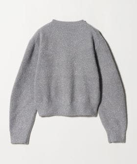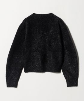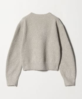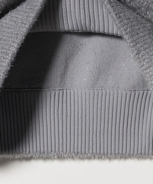 ラメフェザーの華やかな糸と張りのあるポリエステル糸を表と裏で編み分けた、立体的なフォルムを出すのに適したニット生地。
