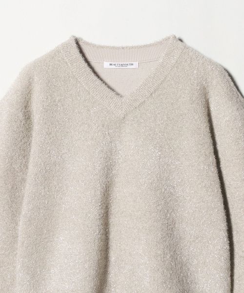 冬の装いに華を添える、カジュアル使いしやすいラメフェザーVネックニット