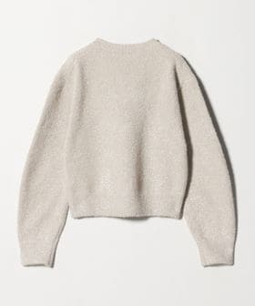 ラメフェザーの華やかな糸と張りのあるポリエステル糸を表と裏で編み分けた、立体的なフォルムを出すのに適したニット生地。