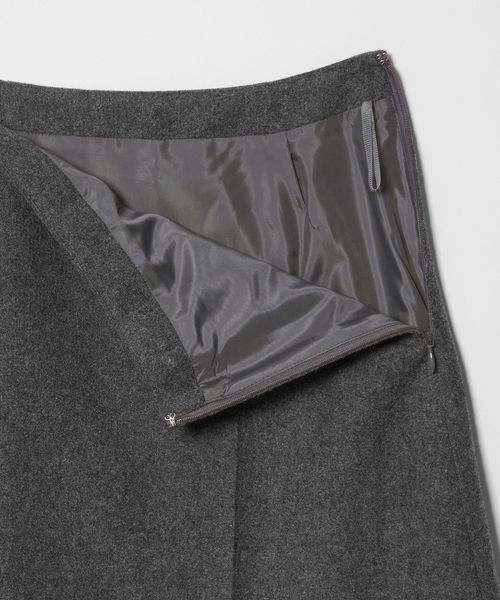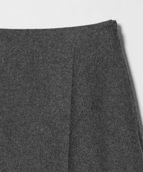 フランネルの風合いとフレアのやわらかな雰囲気を引き締めるプレス入りスカート