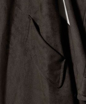 スエードライクの素材感がポイントになり、羽織るだけで様になるアウターです。