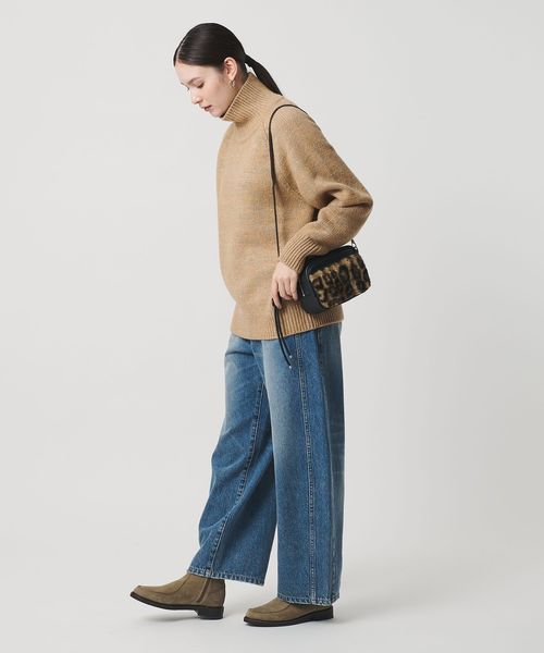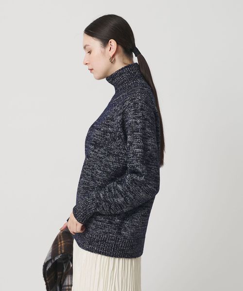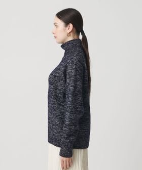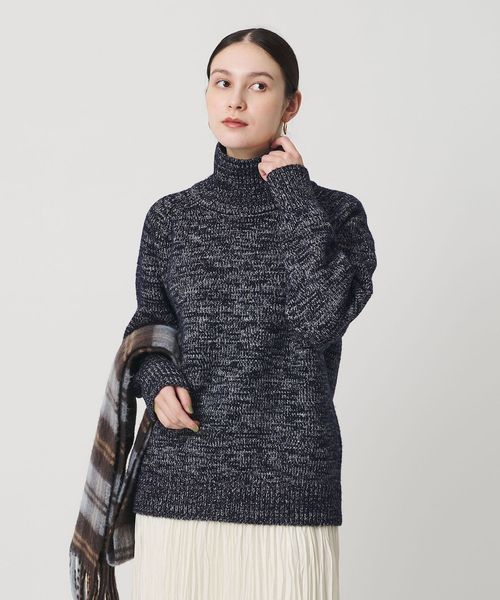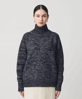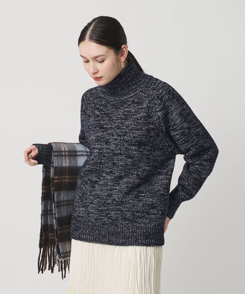 ミックスカラーの色味とラメで表情が豊かなタートルネックニット。