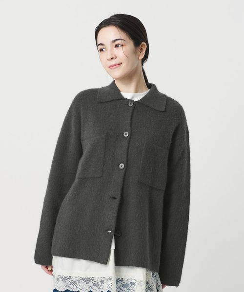 長めの毛足でやわらかな風合いの襟付きカーディガン。