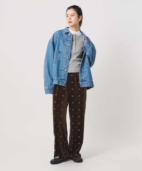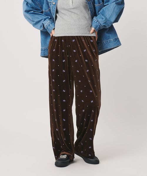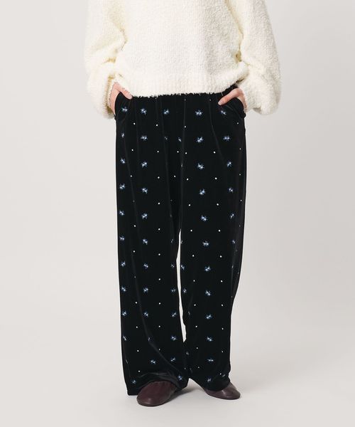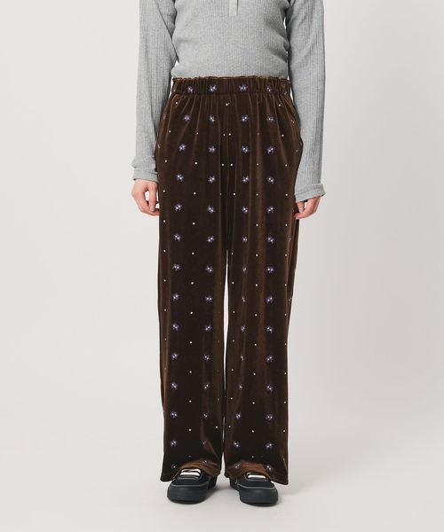 エンブロイダリー ベロアイージーパンツ ウォッシャブル