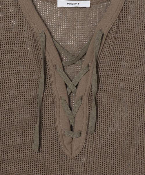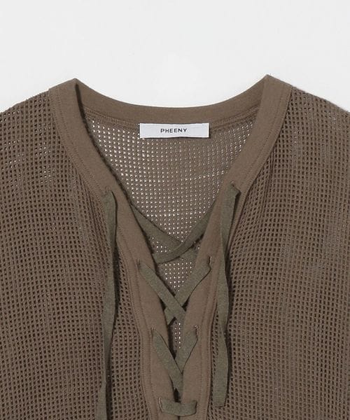 <PHEENY>メッシュ レースアップ ロングスリーブ カットソー
