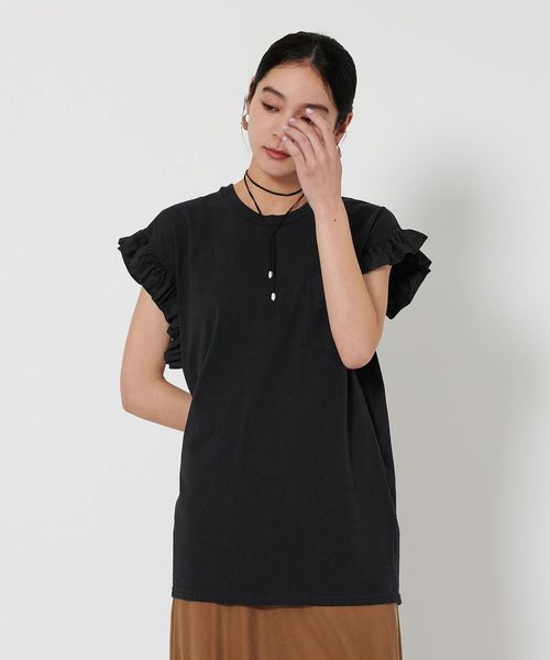 大人フェミニンな<dahl’ia>のフリルスリーブTシャツ。
