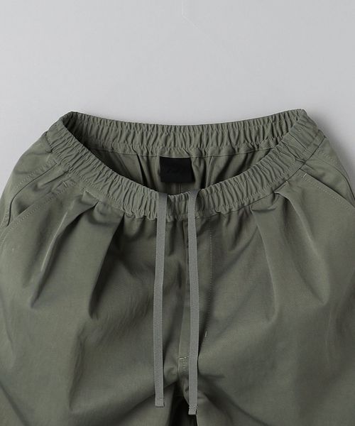 素材の特徴に加え、ウエストにドローコードを配し、着脱しやすい仕様にしています。