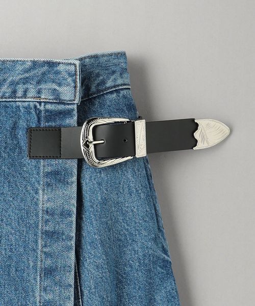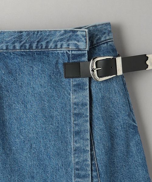 ブランドの世界観を表現したウエスタン調バックル付きのデニムラップスカート。