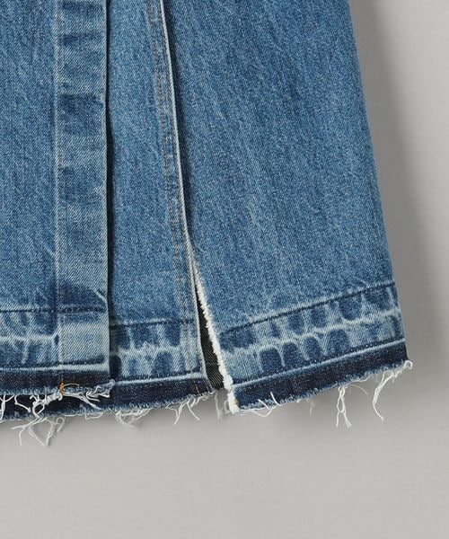 つなぎ目ごとに入れたスリットや、裾の縫い目をほどいたようなディテールが印象的な一着。