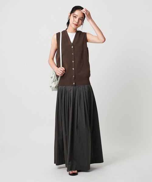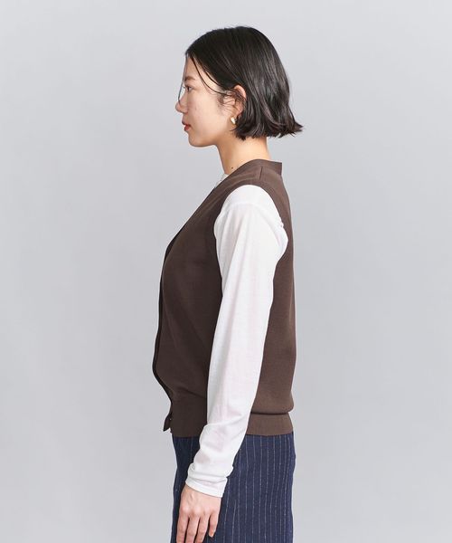 一枚着で抜け感のあるスタイルを楽しんだり、ベストとしてレイヤードしても着用できるのがポイント。