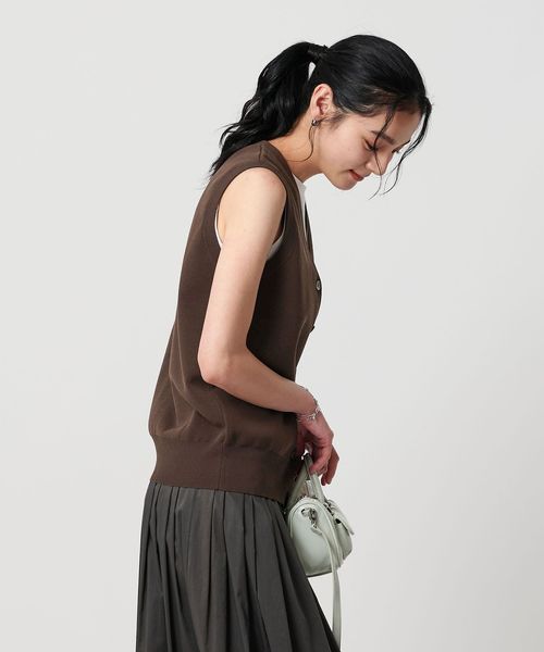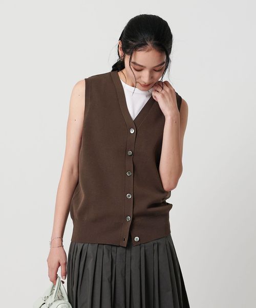 フロントボタン Vネック ニットベスト ―ウォッシャブル―