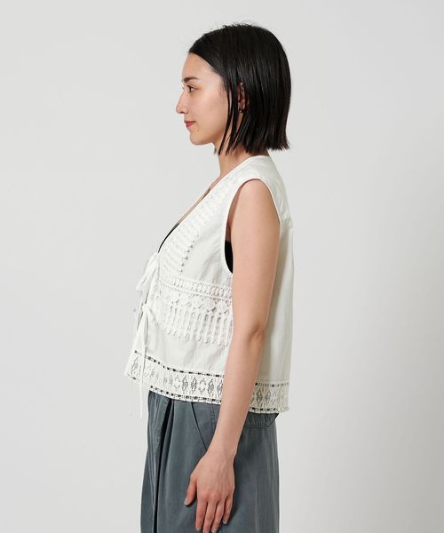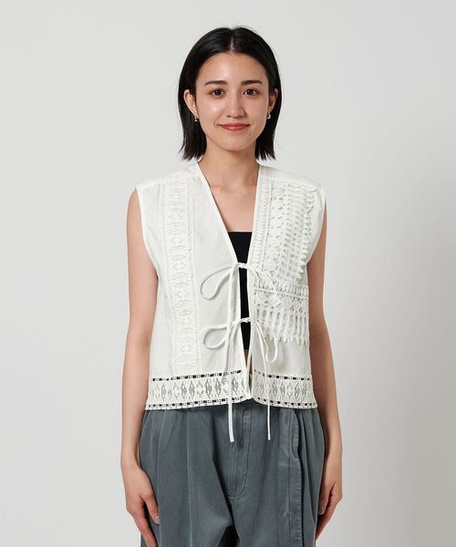 それぞれ異なるレースをフロントに施した、オリジナリティ溢れるベスト。