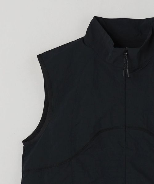 フロントの曲線的なステッチがポイントのハーフジップベスト。