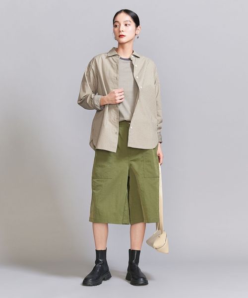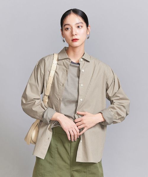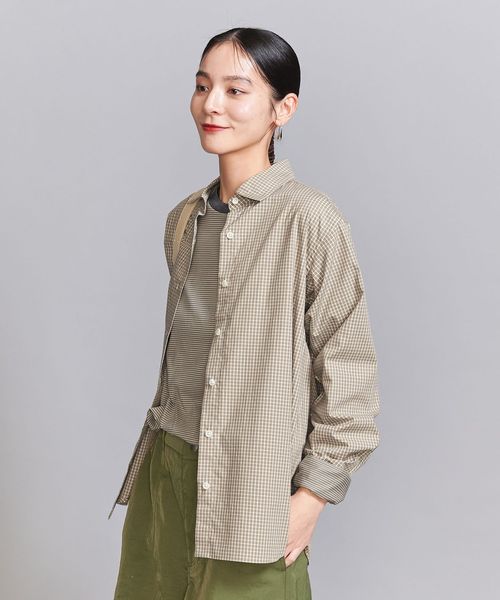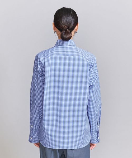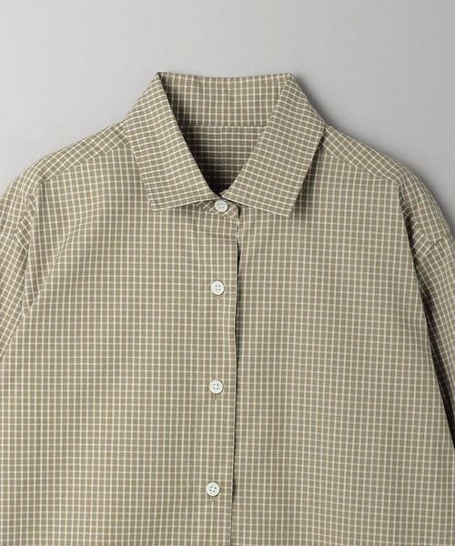 ニットポロの中に合わせたり、ジャケットの中に合わせたり、さりげなくチェックを覗かせるのが◎。