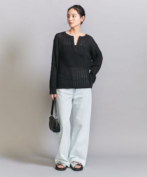 ギマ加工をしたドライタッチな糸で春夏らしい清涼感のある糸を使用。