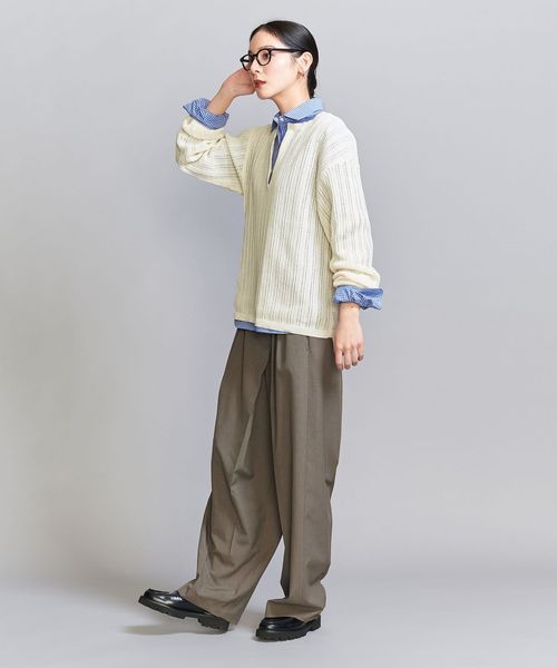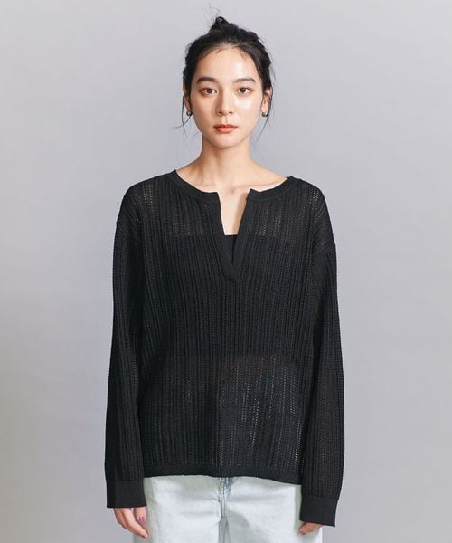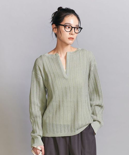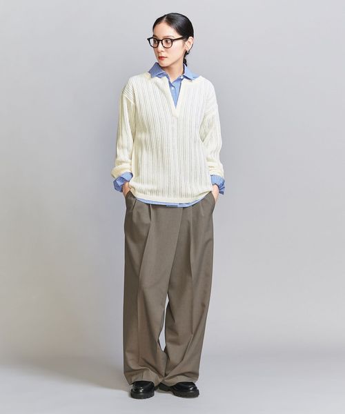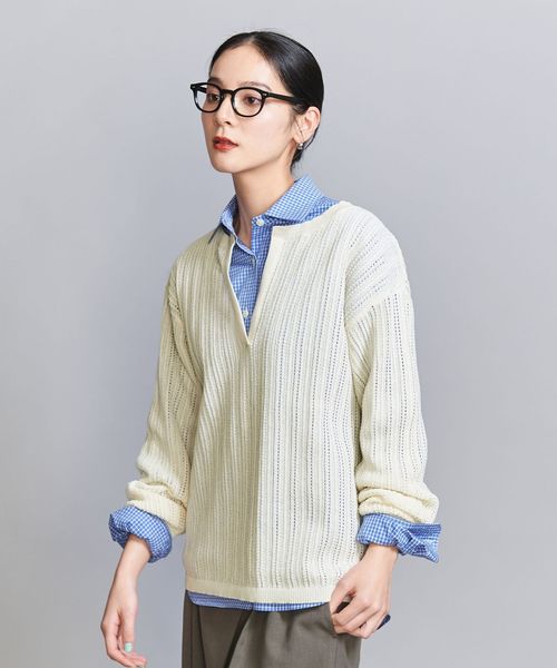 インナーとのレイヤードが楽しめるスキッパーデザインのニットプルオーバー。