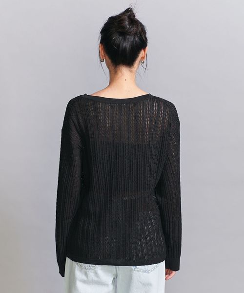 アイレットとケーブル柄を組み合わせた編み柄がポイント。