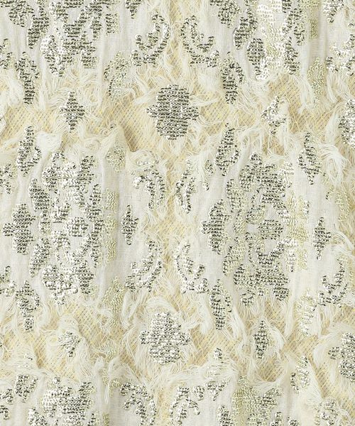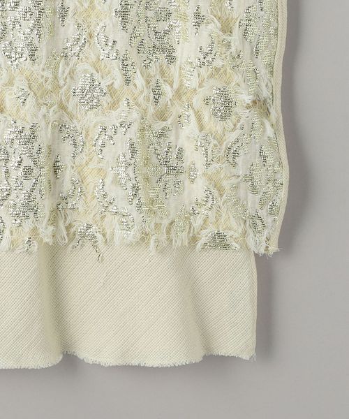 メタリックな柄が華やかな印象のトップス。