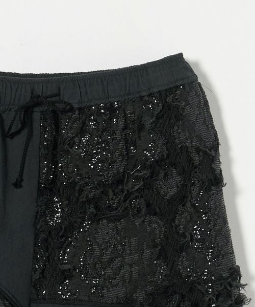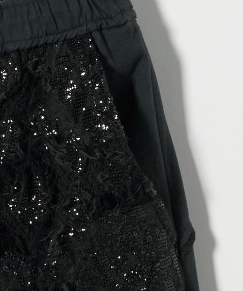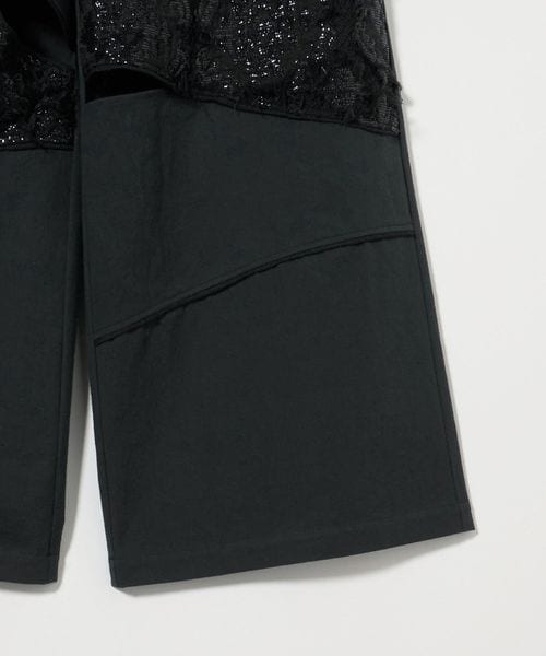 シアー感のある切り替え部分が印象的なスリットパンツ。