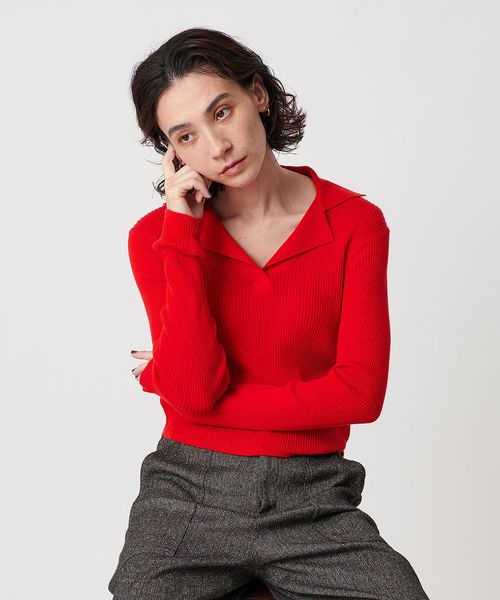 テーラードカラーの様な襟デザインがクラシックな印象のリブニット。