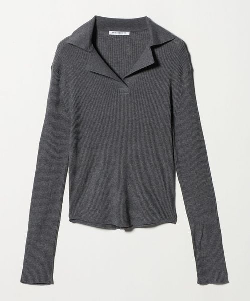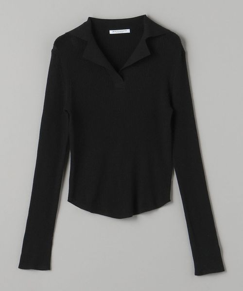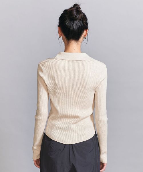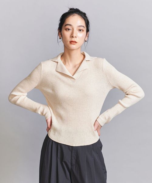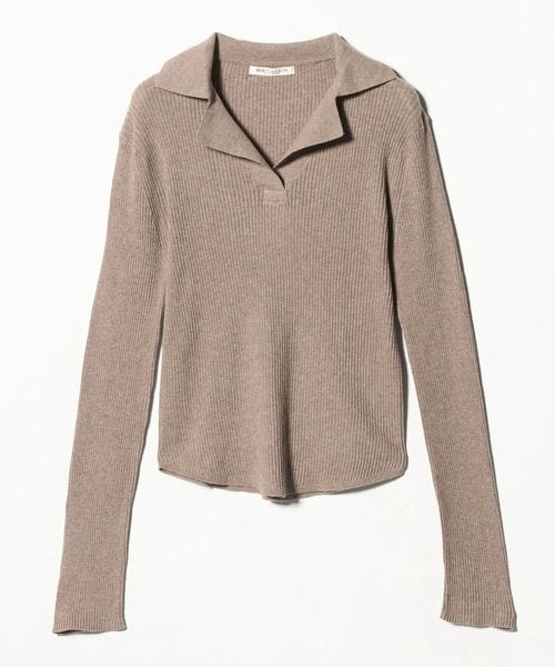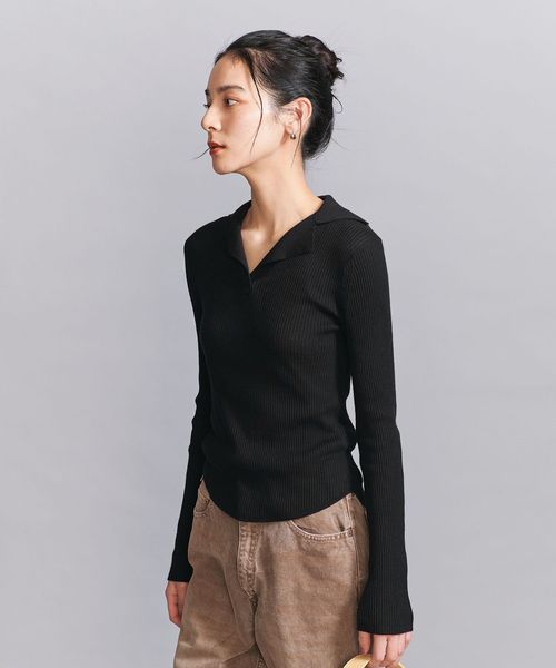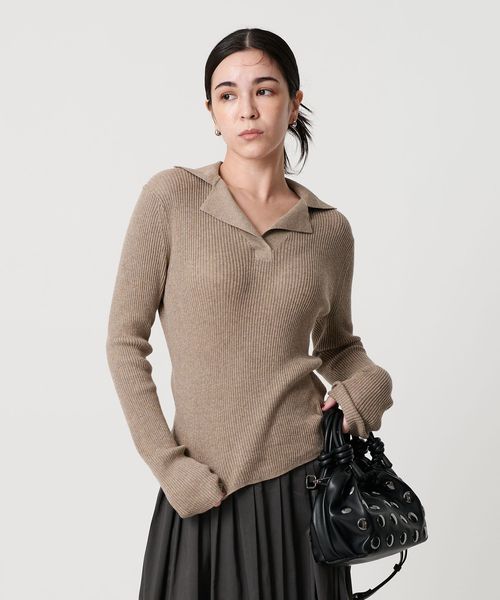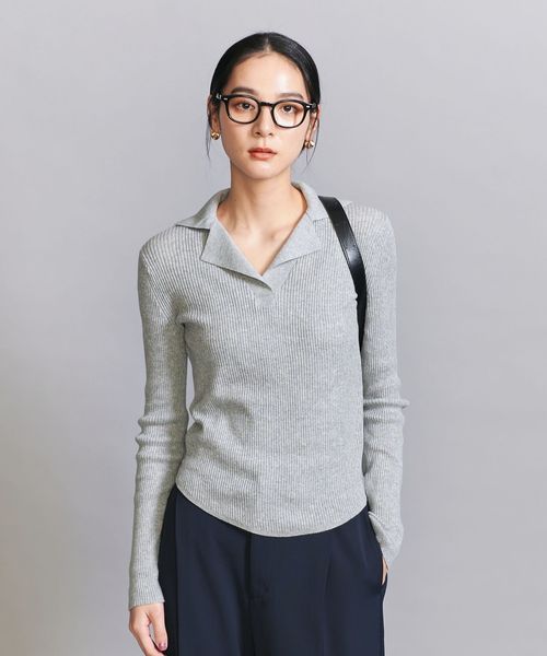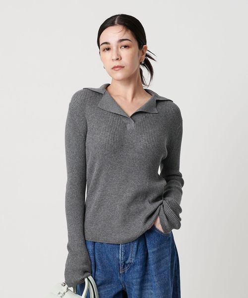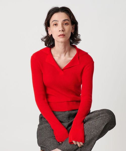 テーラードカラーの様な襟デザインがクラシックな印象のリブニット。