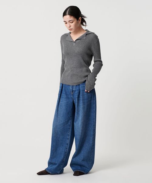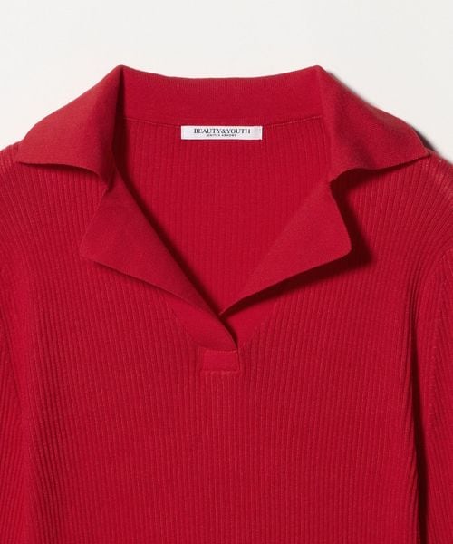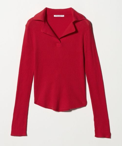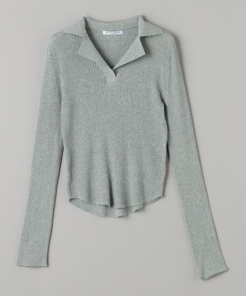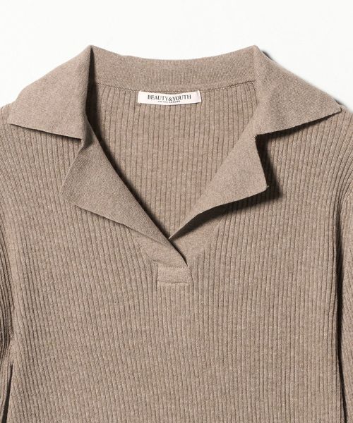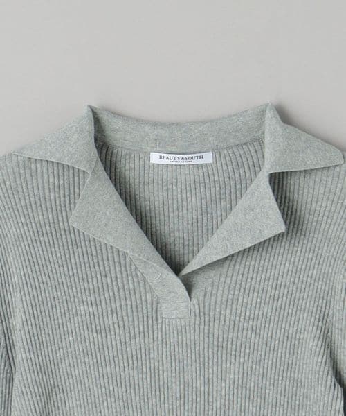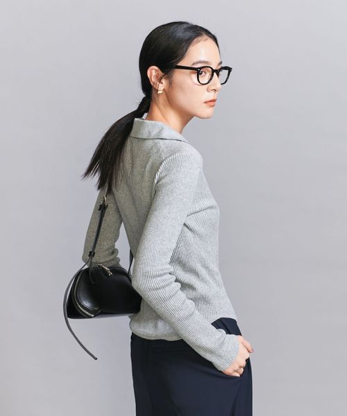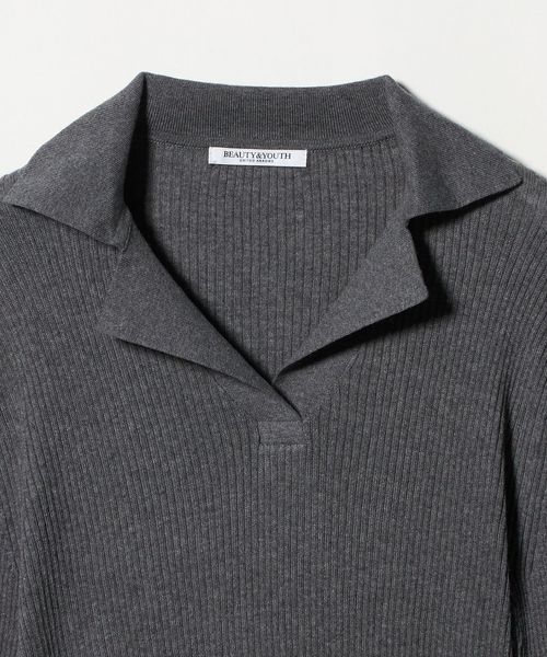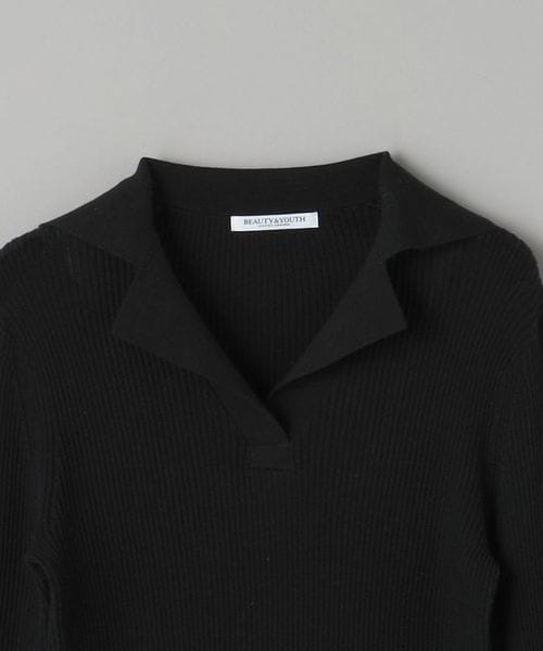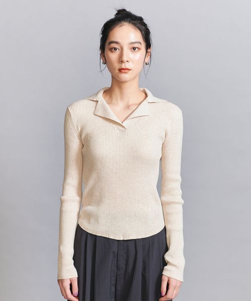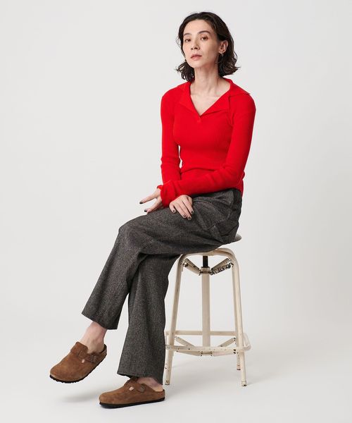 テーラードカラーの様な襟デザインがクラシックな印象のリブニット。