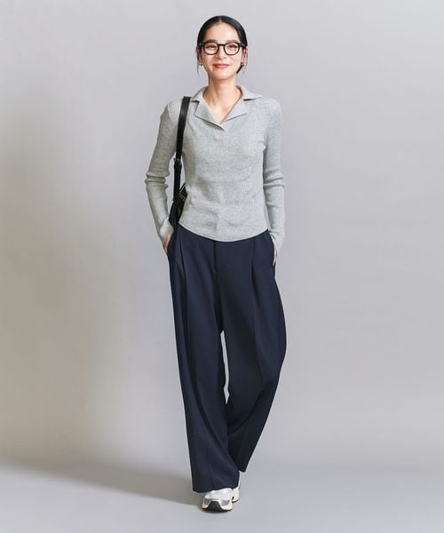 襟付きニットできちんと感。オンオフ使える万能トップス。